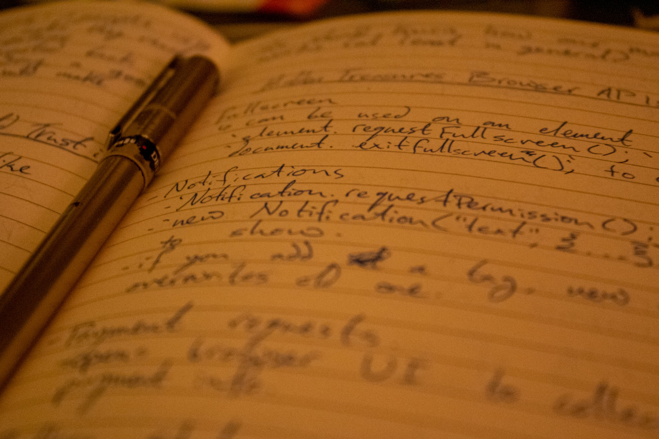 Descriptive text: Notes from a web developer conference, with a section on the notification javascript api in focus