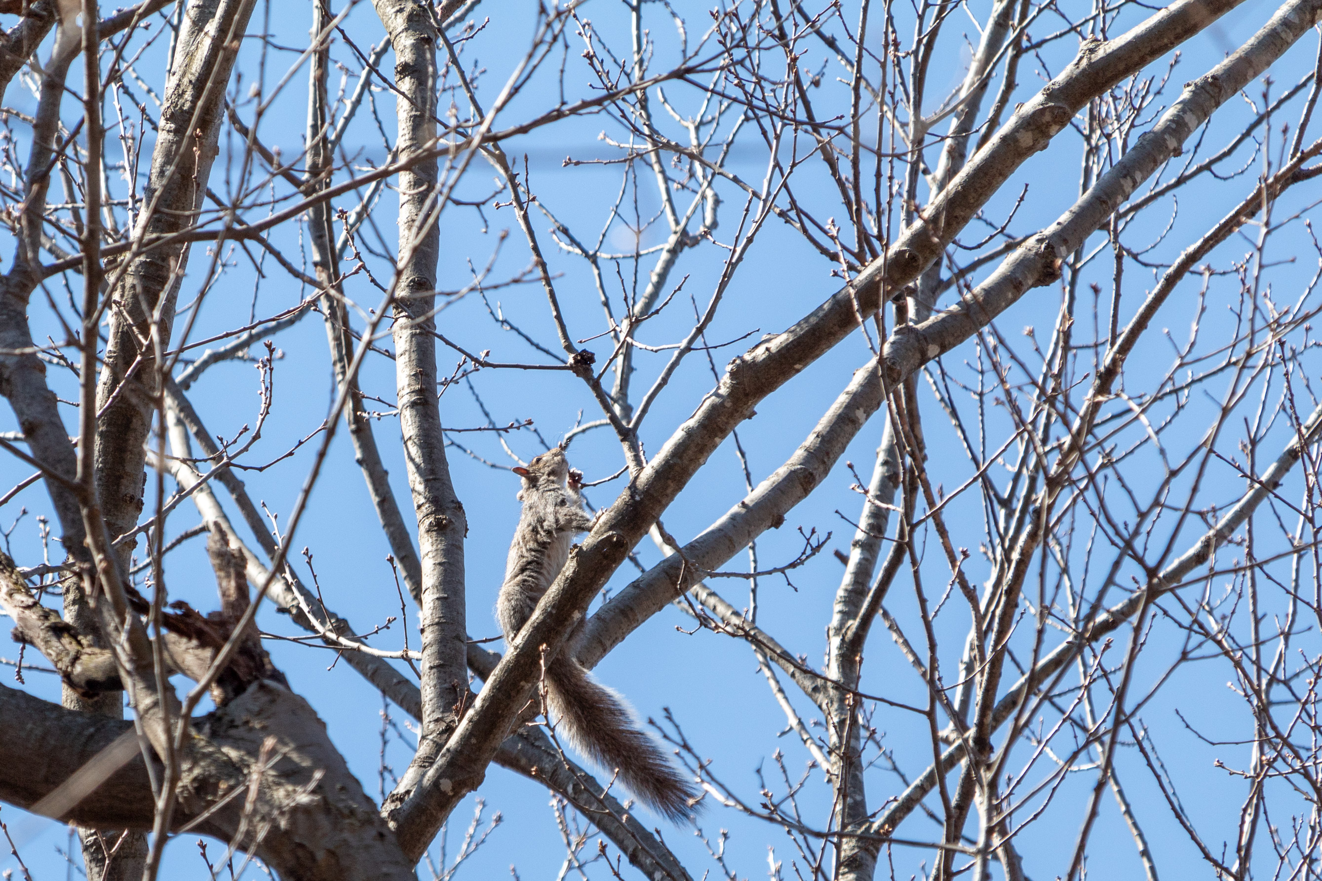 Tags: animal, forest, grey, mammal, sky, squirrel, tree