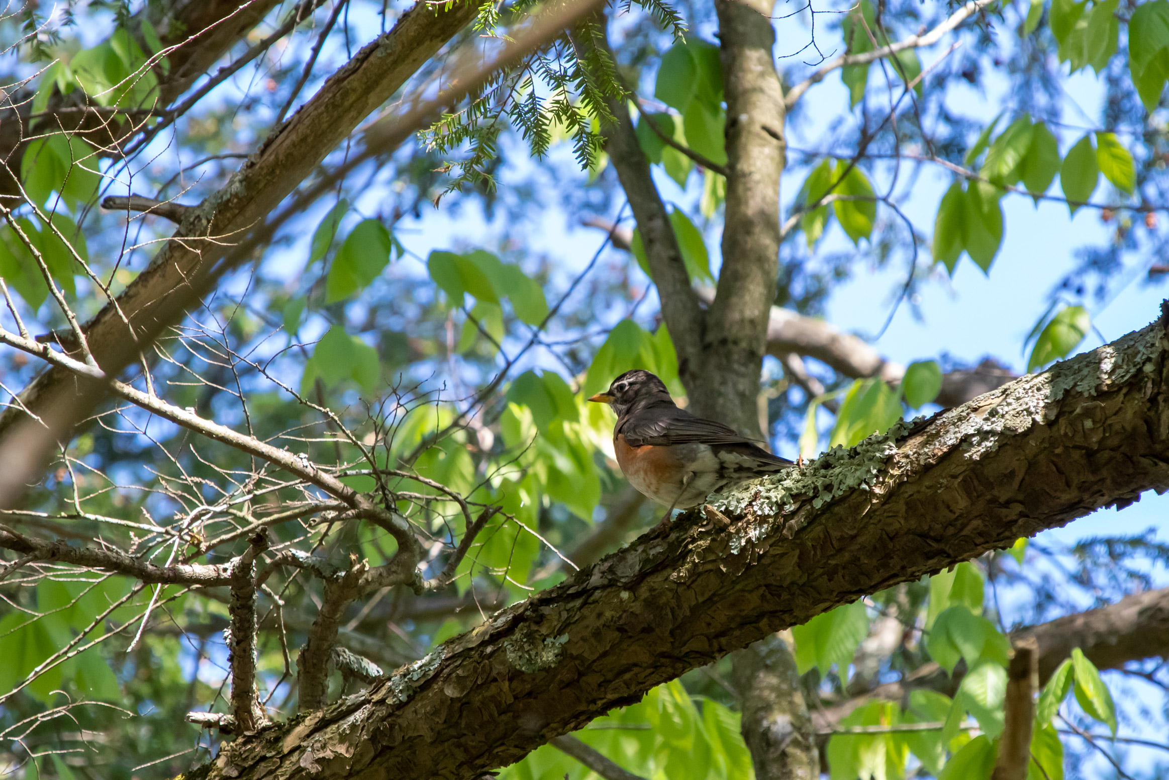 Tags: animal, bird, forest, grey, orange, robin, tree