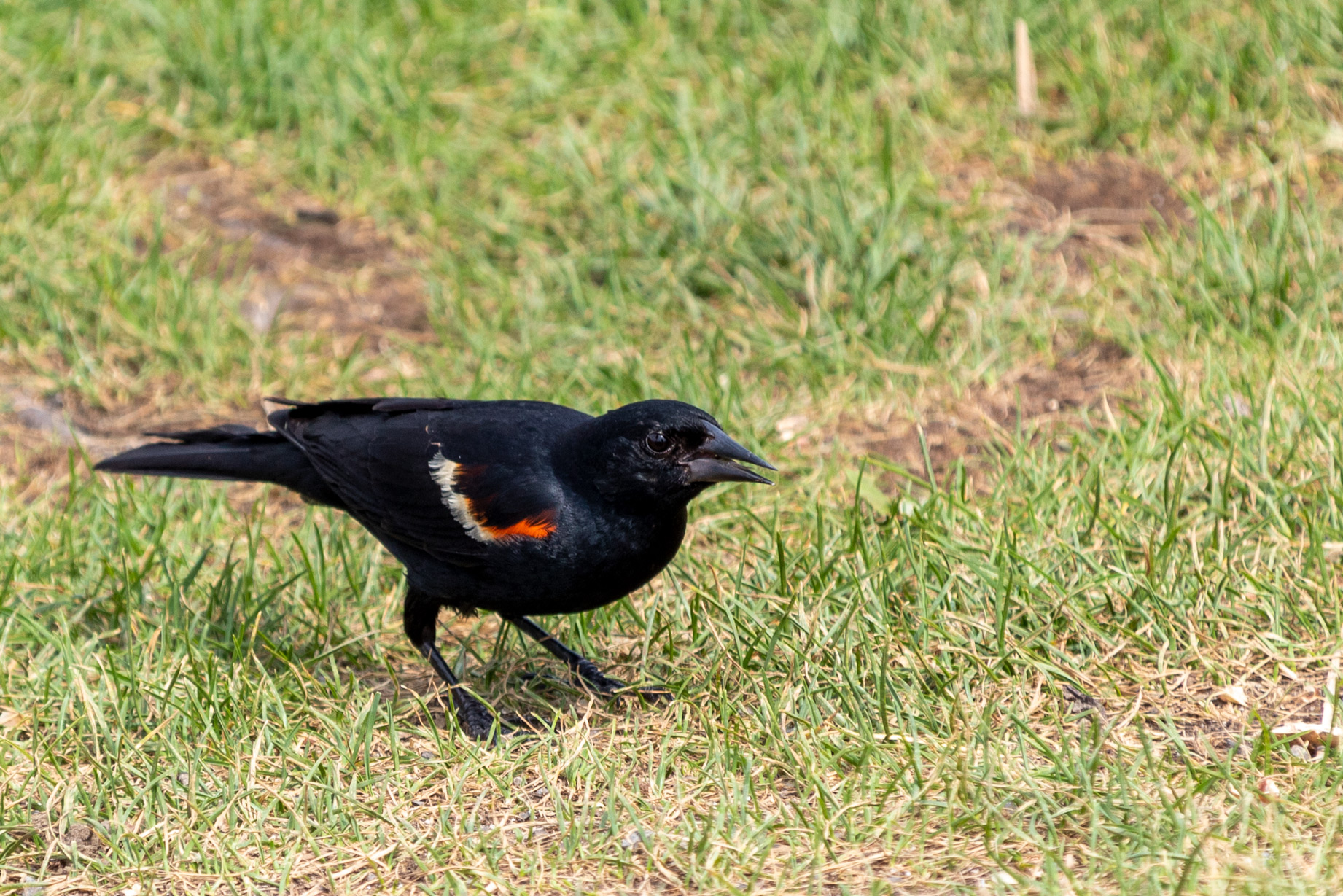 Tags: animal, bird, black, blackbird, grass, ground