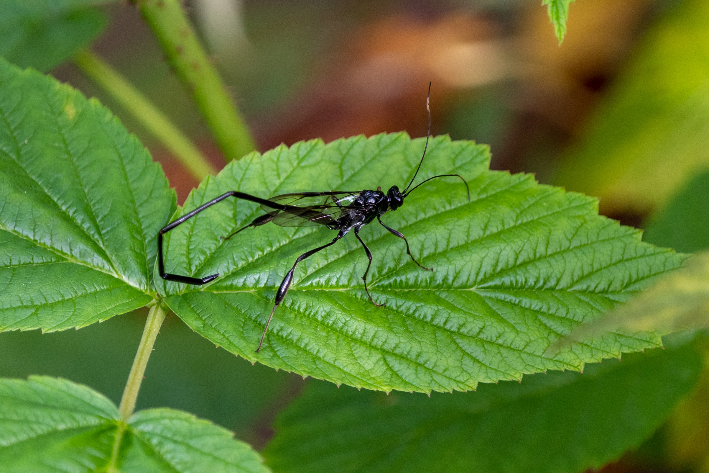 Title: Long Wasp on the Raspberry Plant