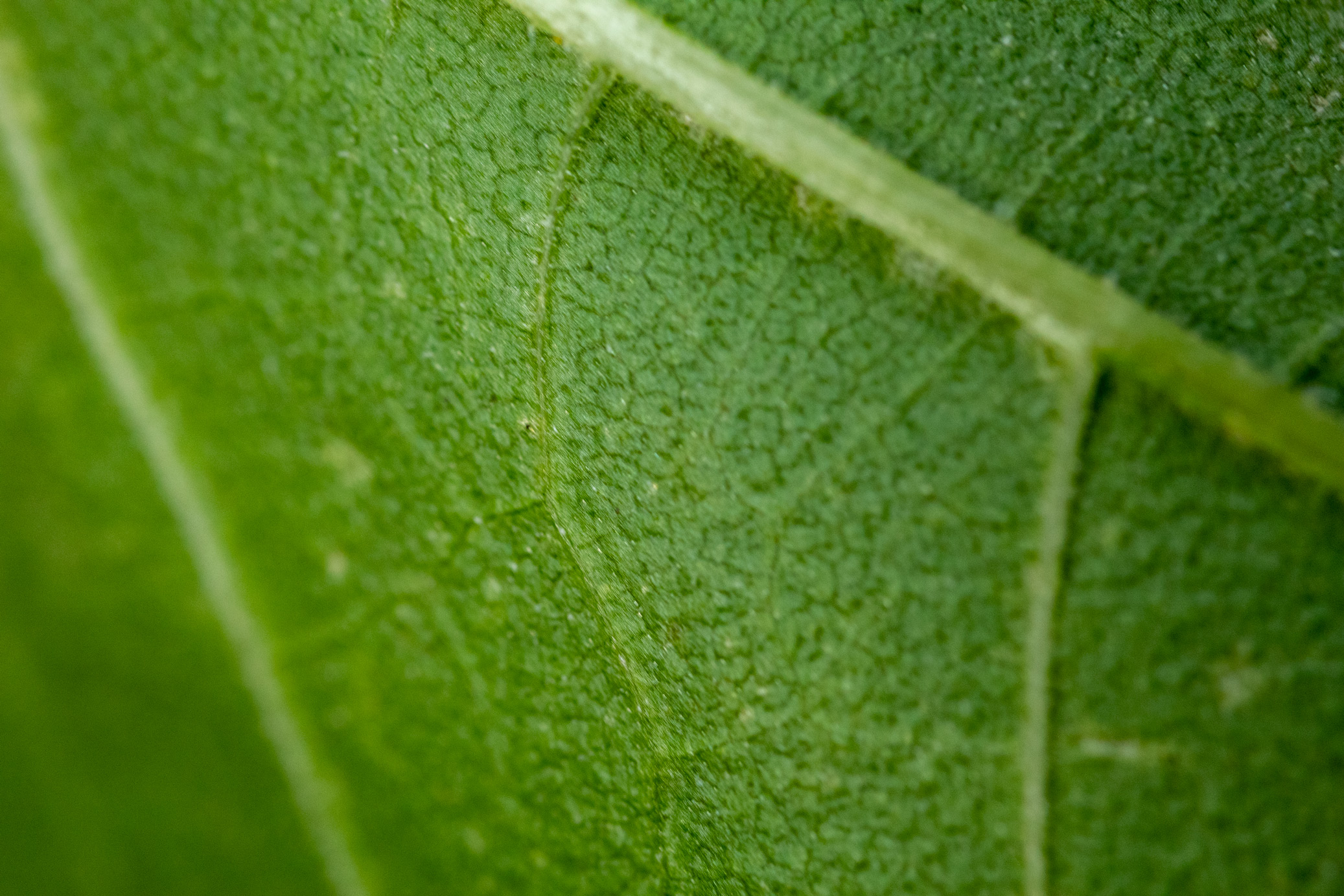 Descriptive text: Macro shot of a sunflower leaf showing the veins on the leaf