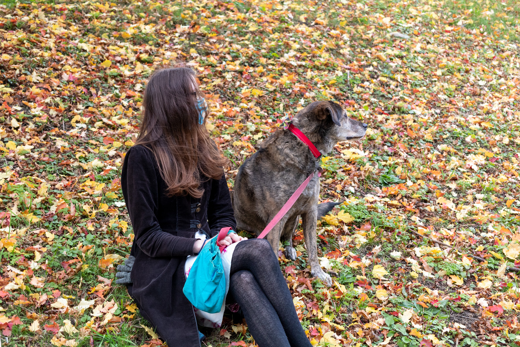 Tags: dog, fall, mammal, person, woman