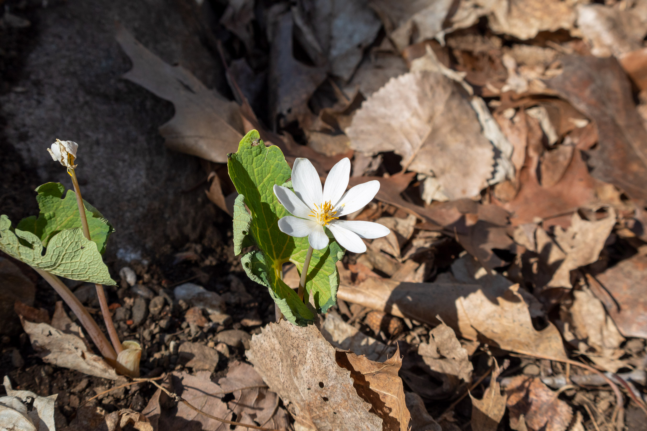 Tags: bloodroot, brown, flower, forest, green, ground, plant, white