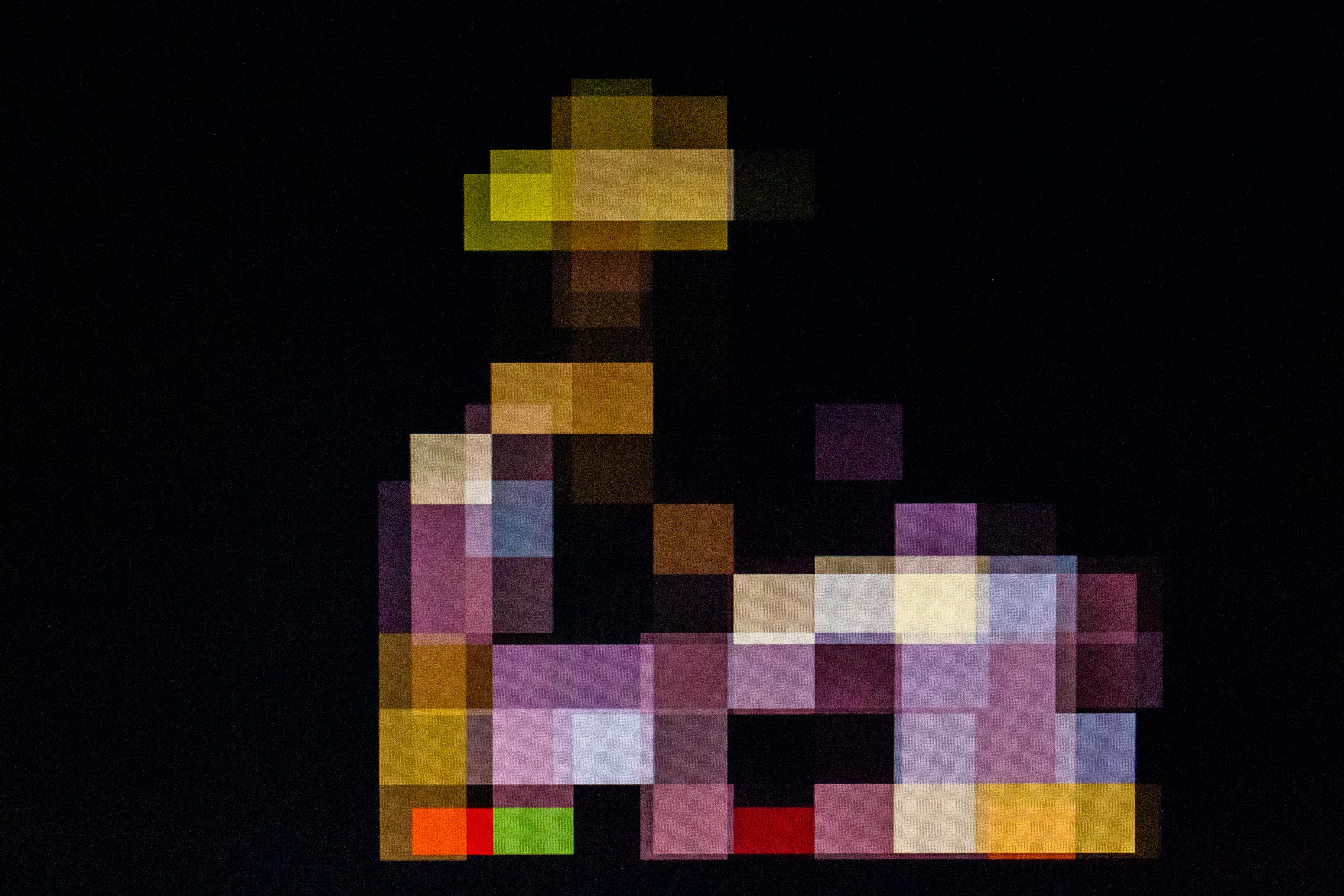 Descriptive text: Blocks of colour on a dark background